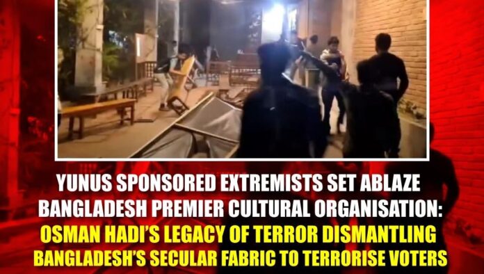 Emboldened by Yunus’s move that imposed ban on recruitment of music teachers in primary schools to appease hardliners, the main building of the organisation has been set ablaze. Despite video footages of arsonists , cops did not arrest attackers.